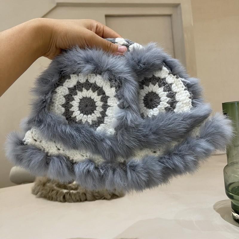 Панама из кроличьего меха женская взрослая шапка с тигриной головой осенне-зимняя милая плюшевая вязаная шапка шапка рыбака со львом тигриная панама M(56-58cm)