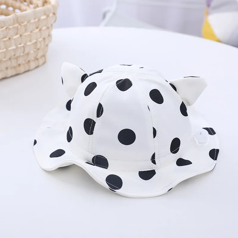 Панама с кошачьими ушками для девочек, милая шапка из мягкого хлопка в горошек, уличная пляжная шляпа от солнца, для начинающих ходить детей,...