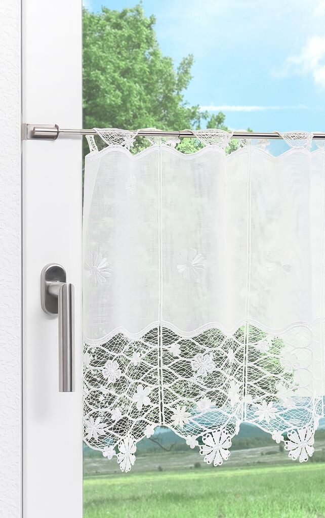 Панельная штора Plauener Spitze - море цветов (ШхВ) 240см*42см экрю, белый