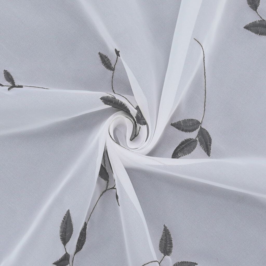 Панельные шторы Joyswahl Вуаль-бистро Штора с вышивкой листьев Прозрачные вышитые кухонные короткие шторы Белый Темно-серый В x Ш 45 x 120 см