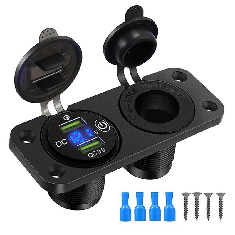 Панель 2 в 1 Двойное ЗУ для автомобиля QC Quick Charge 3.0 Розетка прикуривателя Водонепроницаемая 12 В/24 В Двойное USB гнездо для автомобиля со светодиодным вольтметром Сенсорный переключатель Matches the image