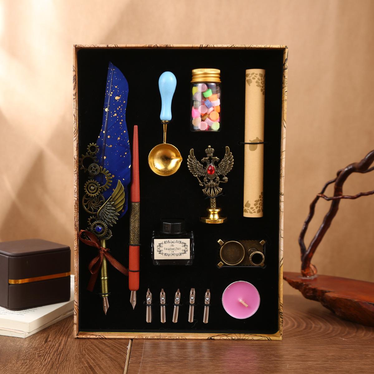 Панк Набор Перьев Ретро Механический Перьевая Ручка с Золотым Напылением Набор Ручек для Обмакивания Подарочная Коробка Подарки на День Учителя 0.5mm