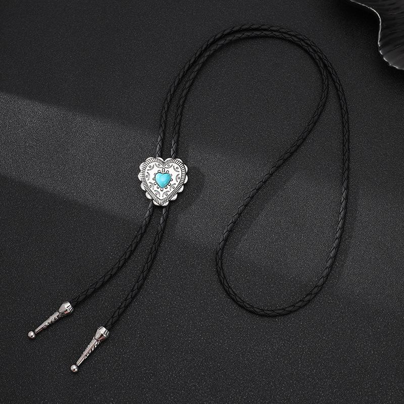 Панк джинсовый галстук-боло модная личность любовь синий бирюзовый кожаный шнурок свитер цепочка сплав кулон