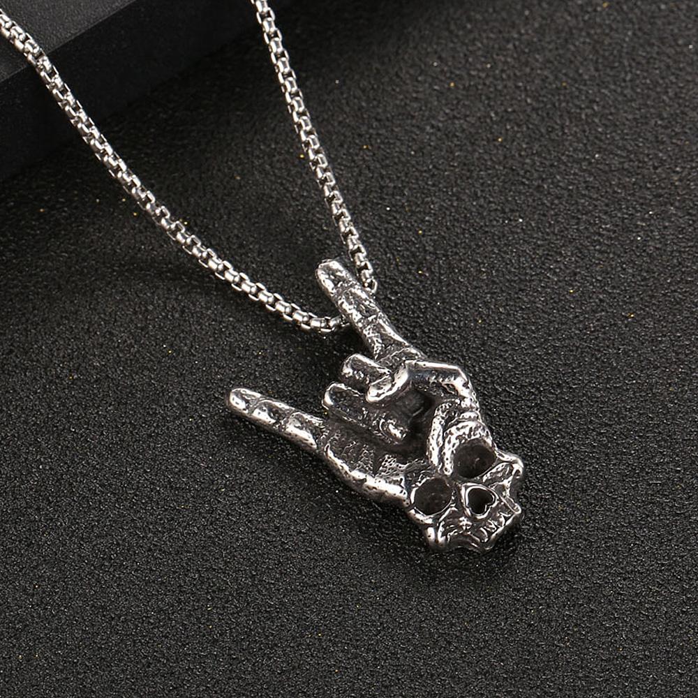 Панк-рок Жест Кулон Ожерелье Мода Хип-Хоп Ретро 316L Нержавеющая сталь Байкер Череп Ожерелье Мужские Ювелирные Изделия Подарок Оптом