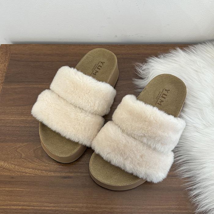 Параллельные брусья на толстой подошве пушистые тапочки для женской верхней одежды 2025 осень новый пушистый универсальный ленивый тапок на одно слово инс 40