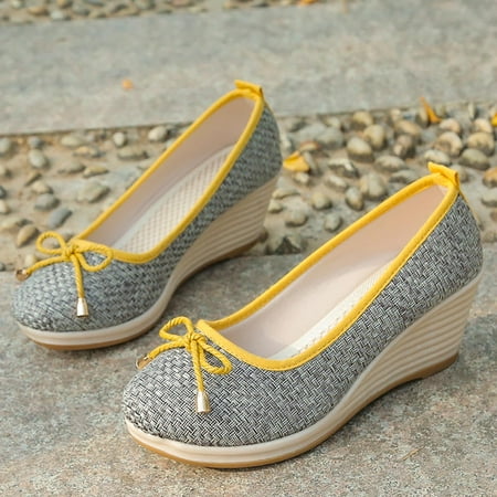 Aayomet Dress Slippers with Thick Heels Women Wedge Pumps Closed Toe Low Heel Dress Shoes Slip On Wedges Gray 7