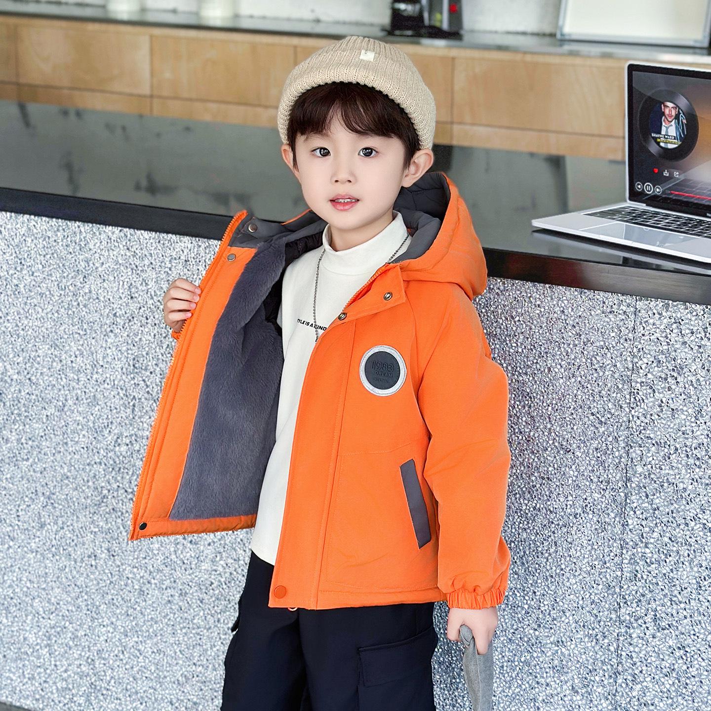 Парка для мальчиков с толстой флисовой подкладкой - 2025 Осень/Зима Модная куртка в корейском стиле 130 cm оранжевый