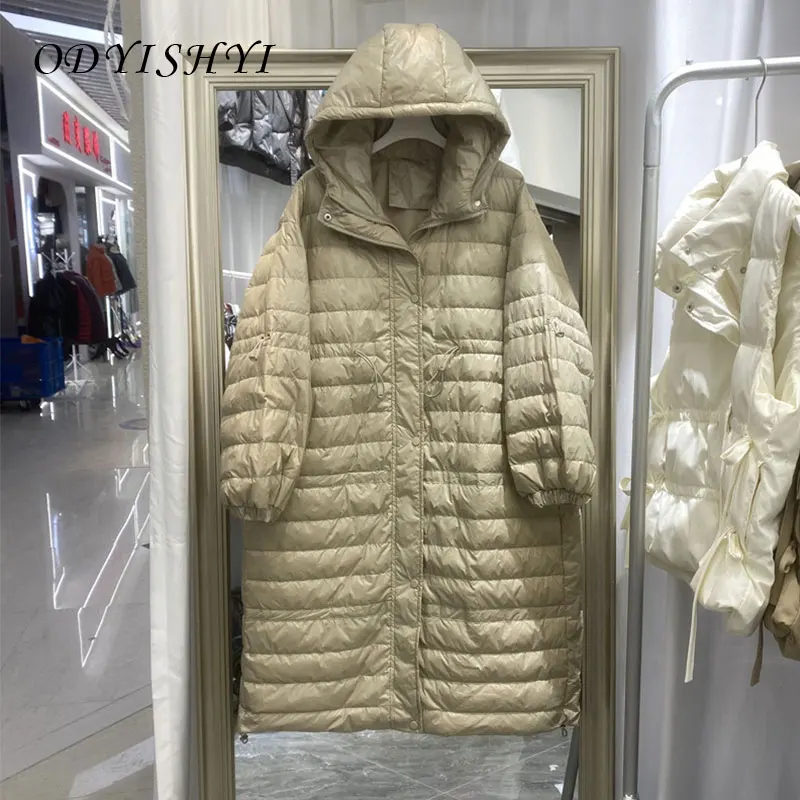 Парка на утином пуху, пальто с капюшоном 2021, толстая зимняя женская куртка-пуховик, женское длинное пальто, легкая свободная модная теплая в...