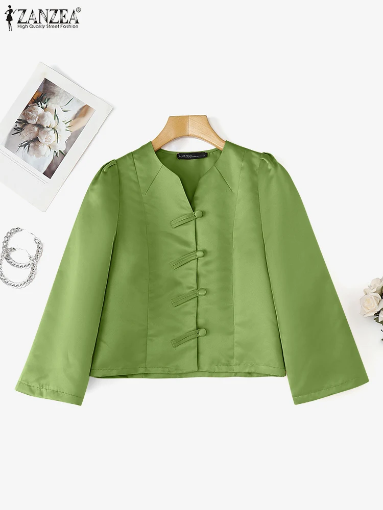 Vintage Chinese Style Tops 2025 ZANZEA Fashion Women Spring Shirts Three Quarter Sleeve Tunic Casual V-Neck Buttons Blusas