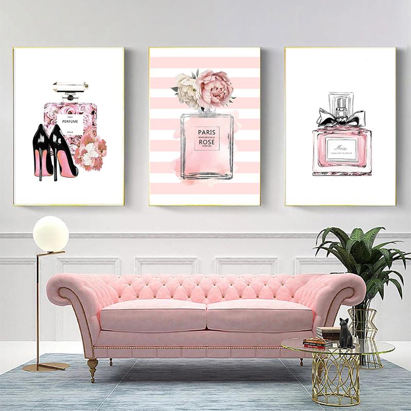 Парфюм Арт Принт Картина на Холсте Парфюм Розовая Картина Мода Холст Абстрактная Живопись Плакаты И Принты Гостиная