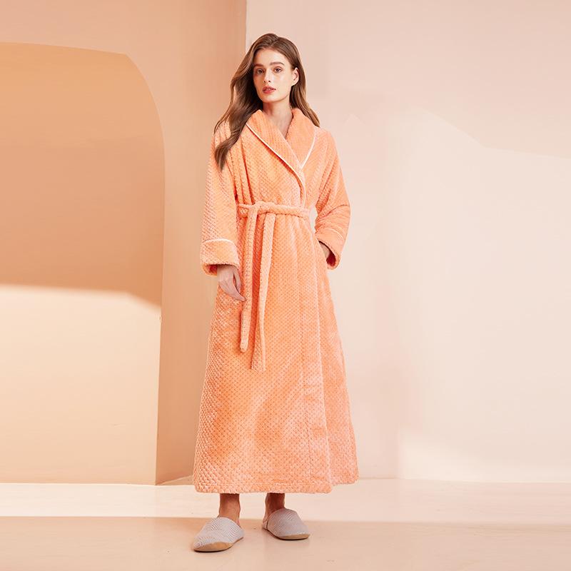 Пары Высококачественный отель осень-зима халат женский однотонный утолщенный V-образный вырез пижамы длинный халат на шнуровке с карманами M красно-оранжевый