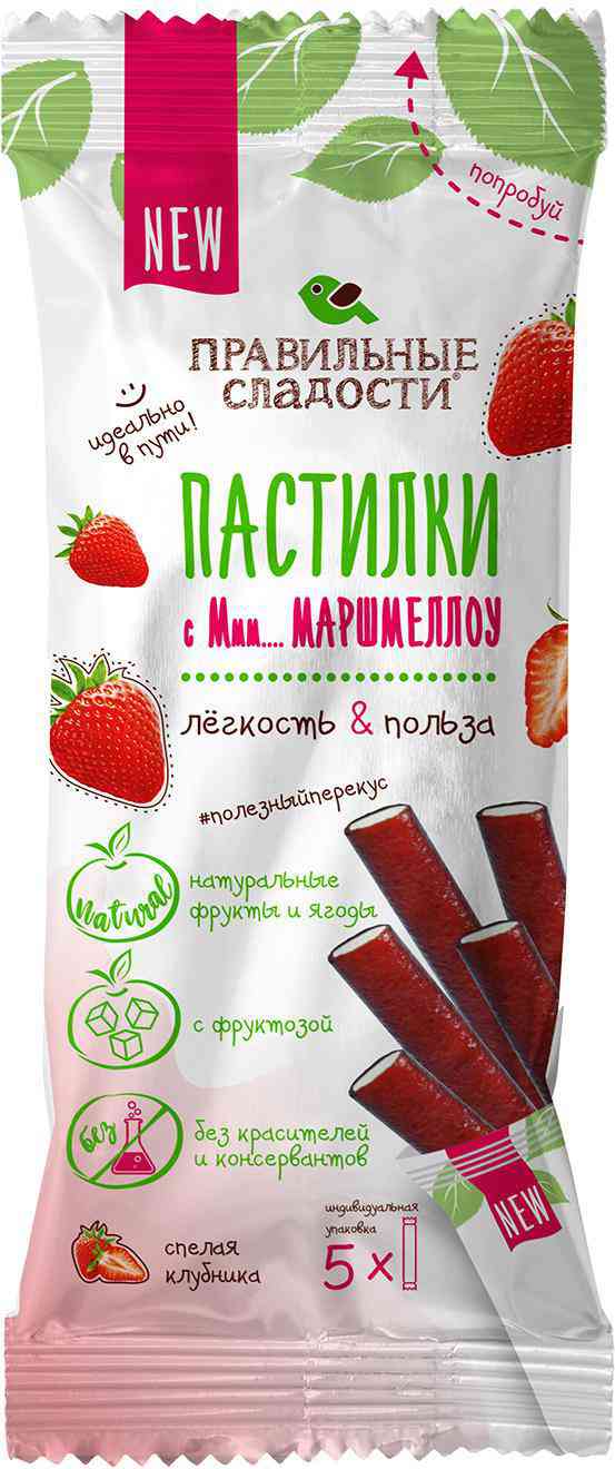 Пастилки Правильные сладости с маршмеллоу Спелая клубника 55 г