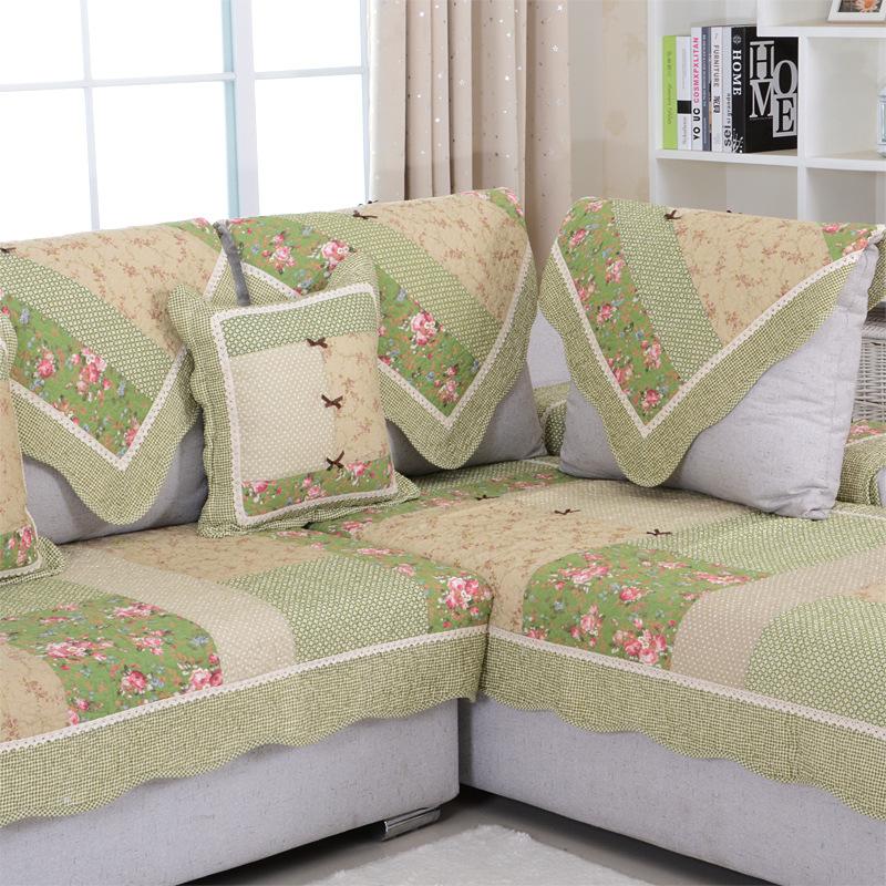 Пасторальная диванная подушка, хлопковая нескользящая четырехсезонная диванная подушка, простое современное стираное хлопковое диванное полотенце 40*60 зелёный