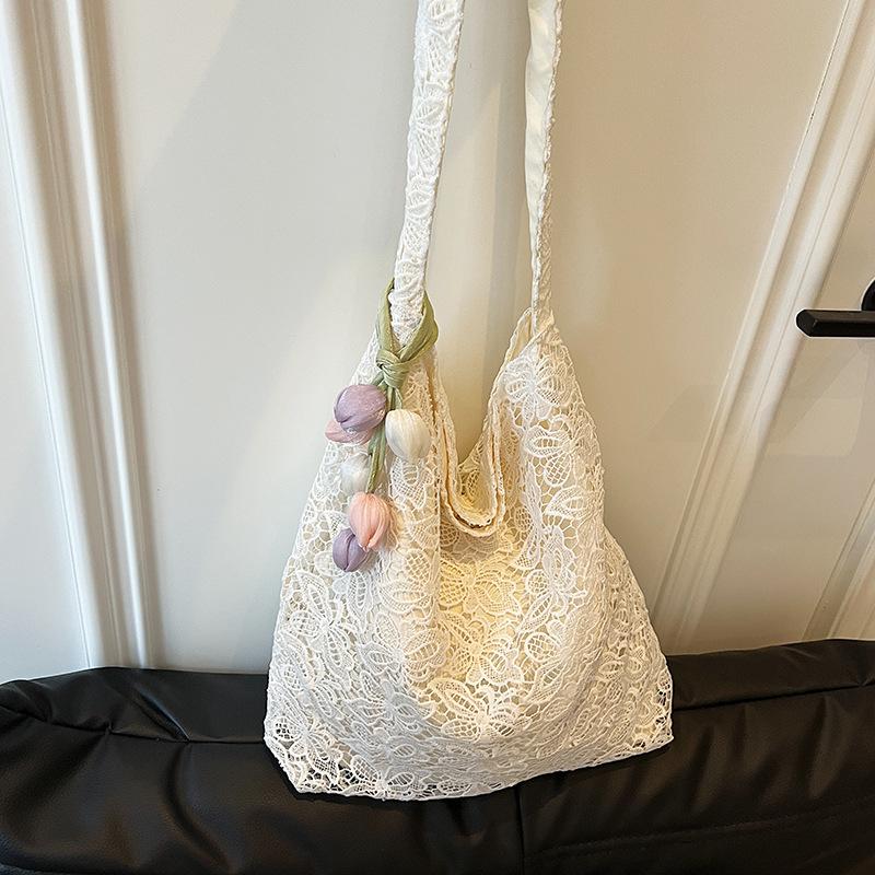 Пасторальная сумка кружевная летняя нежная фея большая вместимость на плечо подмышечная сумка-мессенджер