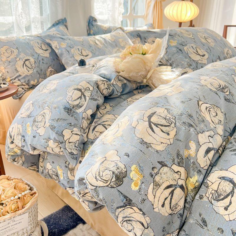 Пасторальный стиль Ins Style Duvet Set Комплект постельного белья Маленький цветочный. Теплая и утолщенная двухслойная простыня и одеяло из хлопка для стирки 150x200 3pcs