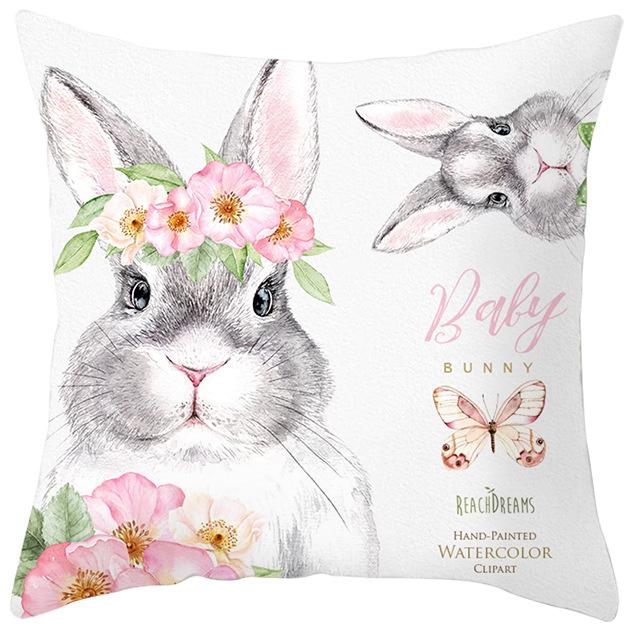 Пасхальная персиковая кожаная бархатная наволочка Весенний нарисованный кролик цветы цифровая печать домашняя ткань наволочка 45 * 45Cm without pillow core