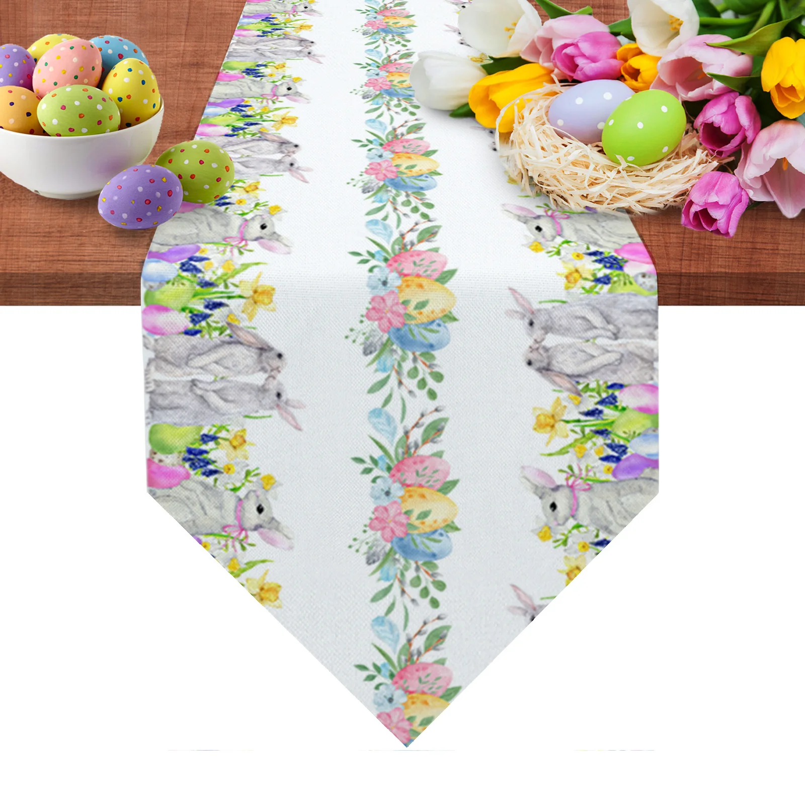 Пасхальное яйцо, акварельный кролик, цветок, Весенняя дорожка для стола, скатерть для свадебной вечеринки, пасхальное украшение, коврик для ...