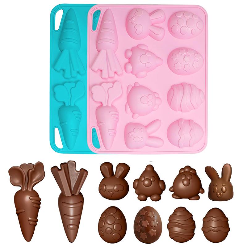 Пасхальные силиконовые формы для шоколада, формы для пасхальных конфет 3D в форме яйца, кролика, морковки, антипригарные формы для самодельного шоколада синий
