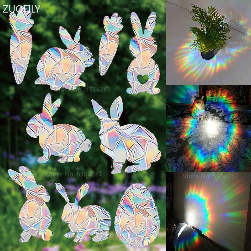 Пасхальный кролик Яйцо Морковь Ловец Солнца Наклейки на стену Электростатическое оконное стекло ПВХ Declas Цветок Облако Ловец Солнца Радуга Призма