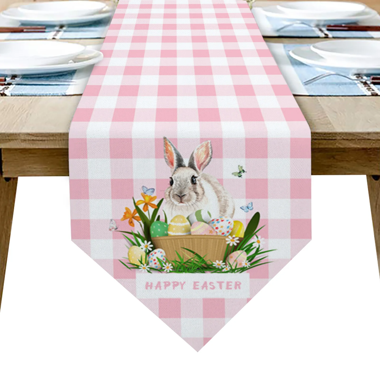 Пасхальный кролик и яйцо, клетчатая скатерть для стола, украшение для деревенской свадьбы, скатерть, коврик для стола с флагом, пылезащитный...
