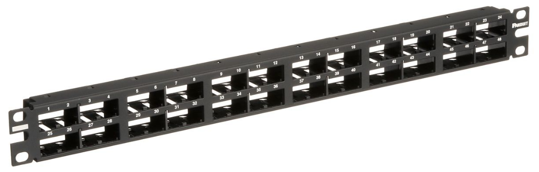 Патч-панель в шкаф 19" 1U, неукомплектованная, порты: 48 x RJ-45 кат. 5e, черный, CPP48HDEWBL, PANDUIT (CPP48HDEWBL), CPP48HDEWBL