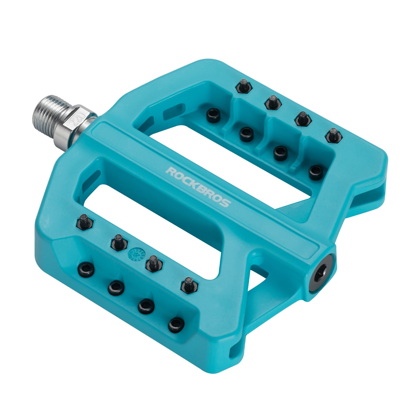 Педали для велосипеда ROCKBROS Плоские педали Большая площадь Нейлоновое волокно Дюймовые Педали для шоссейного велосипеда Легкие Шипы с высоким сцеплением MTB Прочные Хромомолибденовая сталь синий