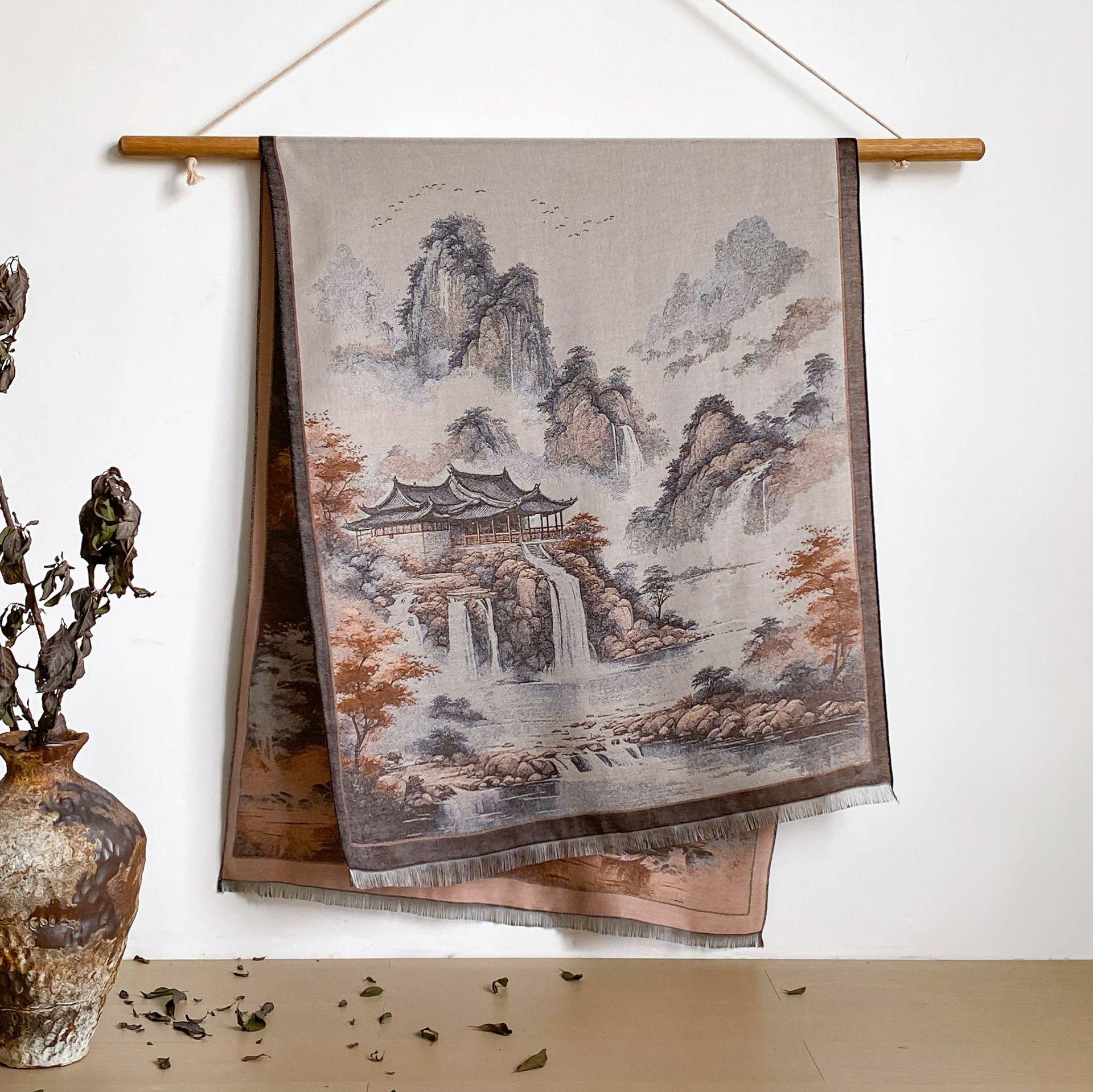 Пейзаж Пейзаж Масляная Живопись Осень И Зима Длинный Тонкий Шарф Национального Стиля Женский Шарф-Шаль из Имитации Кашемира для Кондиционированного Помещения 190*70