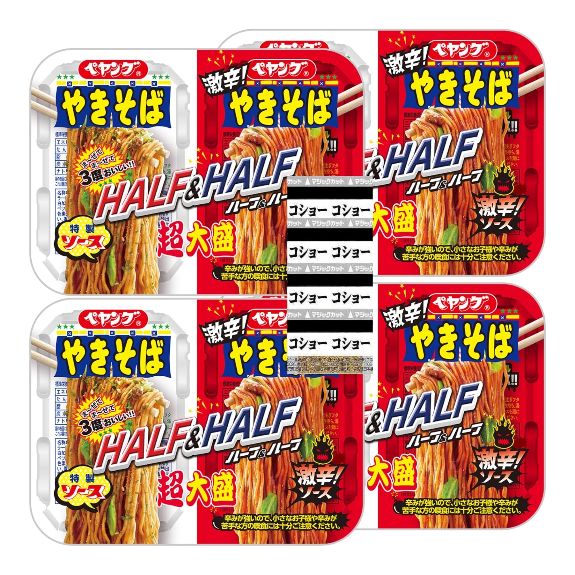 Пейонг Супер Большой Якисоба, Половина и Половина, Супер Острый, Набор из 4 штук, Maruka Foods