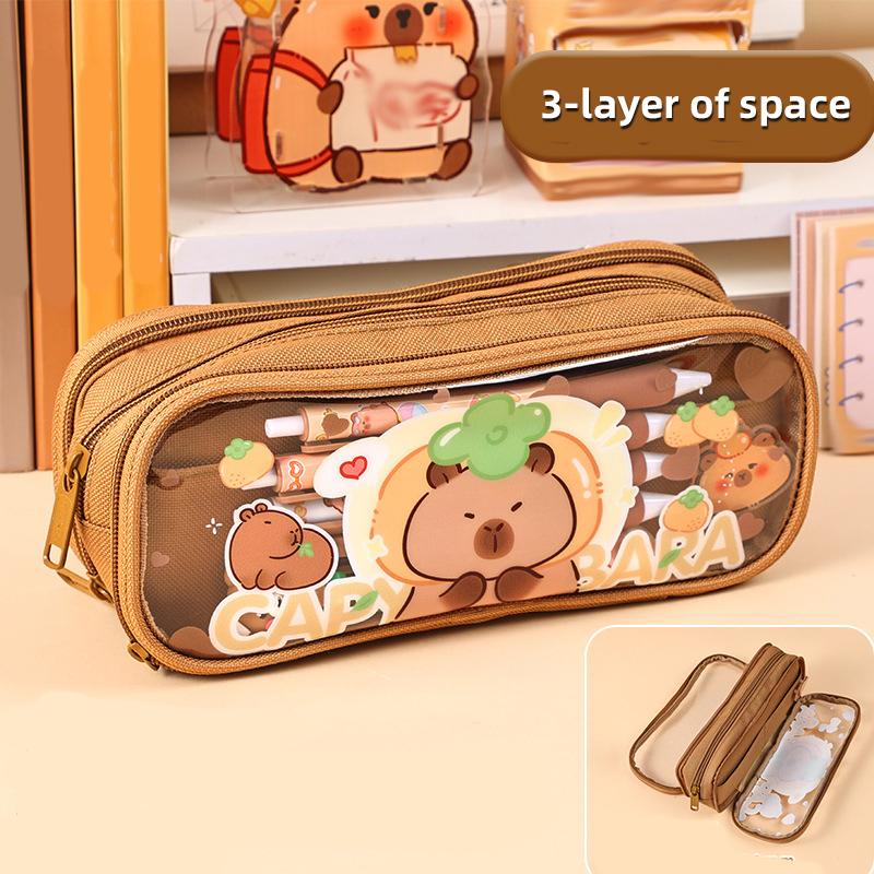 Пенал Капибара Мультяшный Прозрачный Пенал большой вместимости Студенты Дети Многослойный Пенал Сумка для хранения