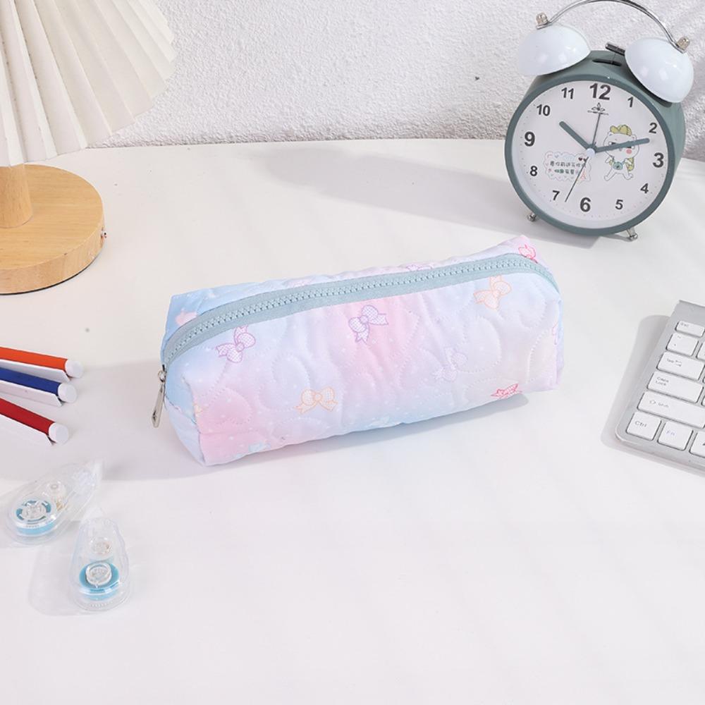 Пенал с бантиком Портативная косметичка Мультяшная сумка для ручек Школа Офис синий