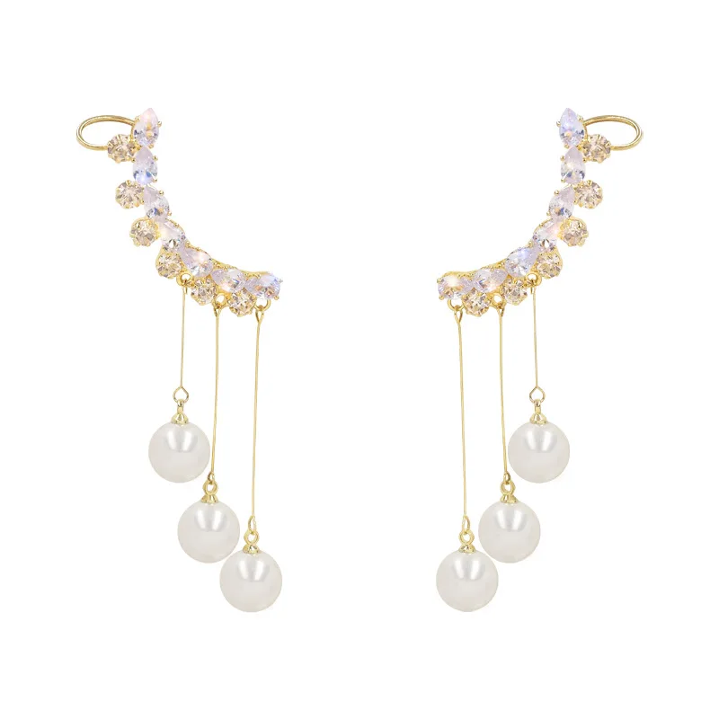 CH-1006 s925 silver needle pearl tassel ear clip Korean simple temperament earrings retro personality palace style earrings