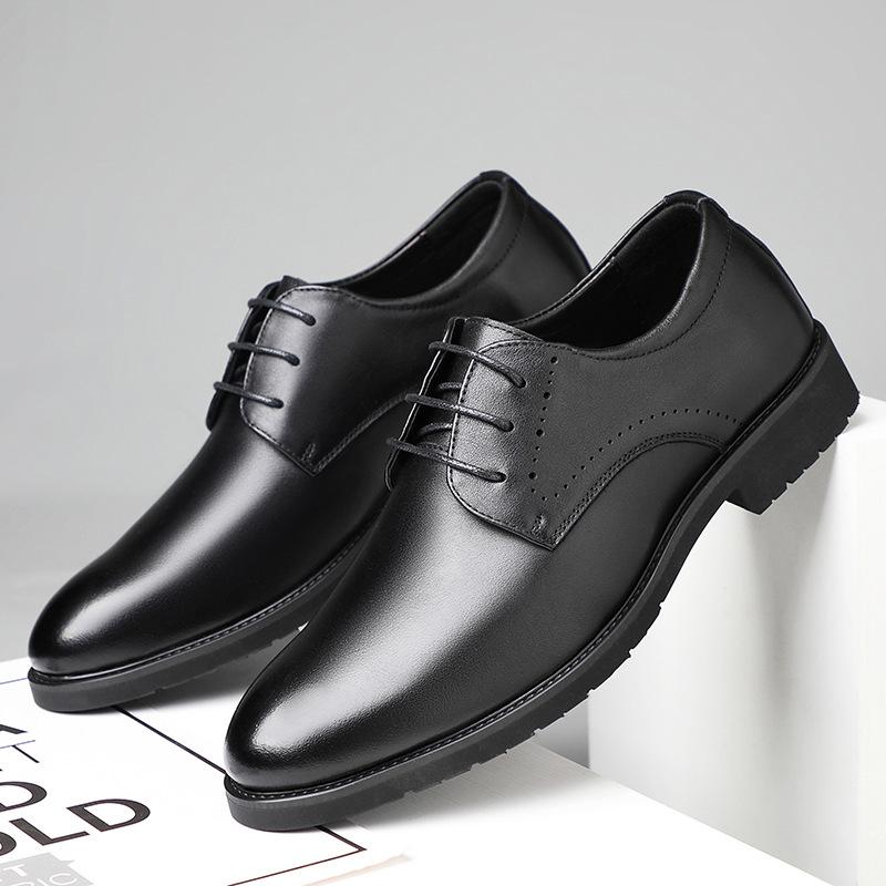 Первый слой коровьей кожи осень новая мужская повседневная кожаная обувь натуральная кожа платья бизнес с острым носком мужская обувь дышащая обувь 38