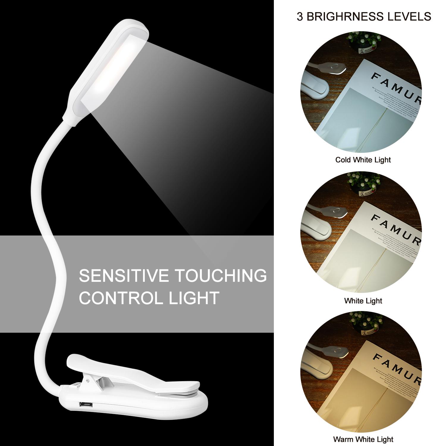 Перезаряжаемая настольная лампа для чтения книг с зажимом для защиты глаз для чтения в спальне