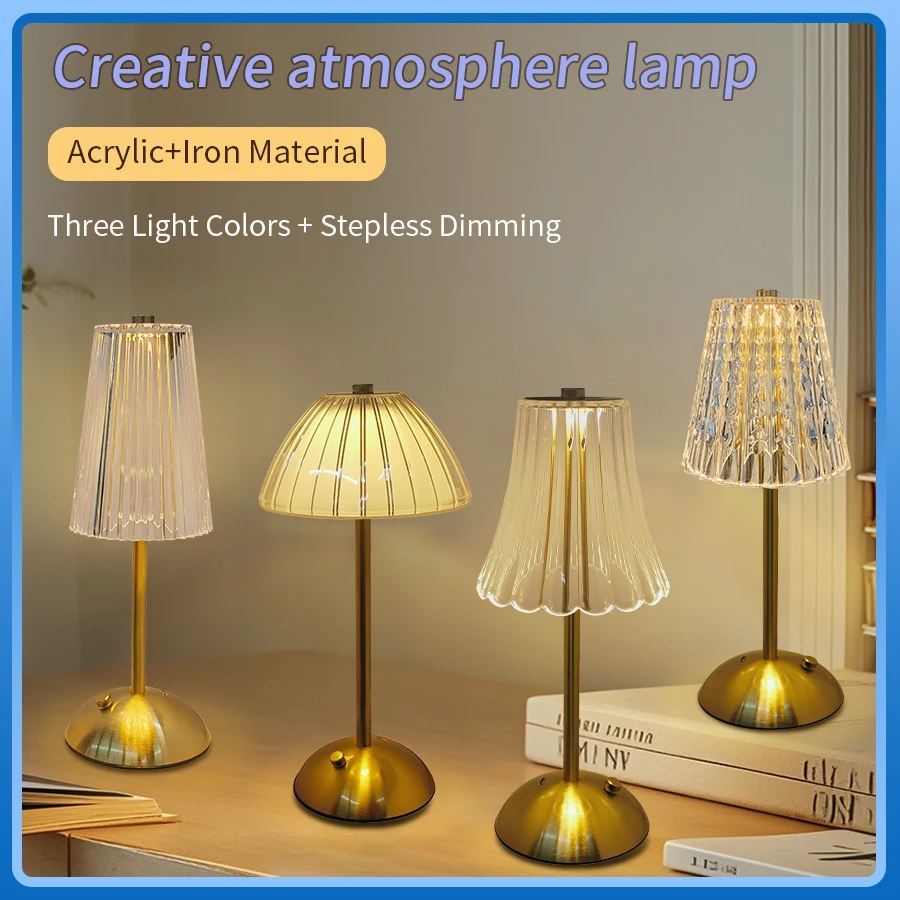 Перезаряжаемая сенсорная светодиодная настольная лампа с регулируемой яркостью, настольная ночная лампа, беспроводная лампа для чтения для отеля, бара, спальни, атмосферный ночник