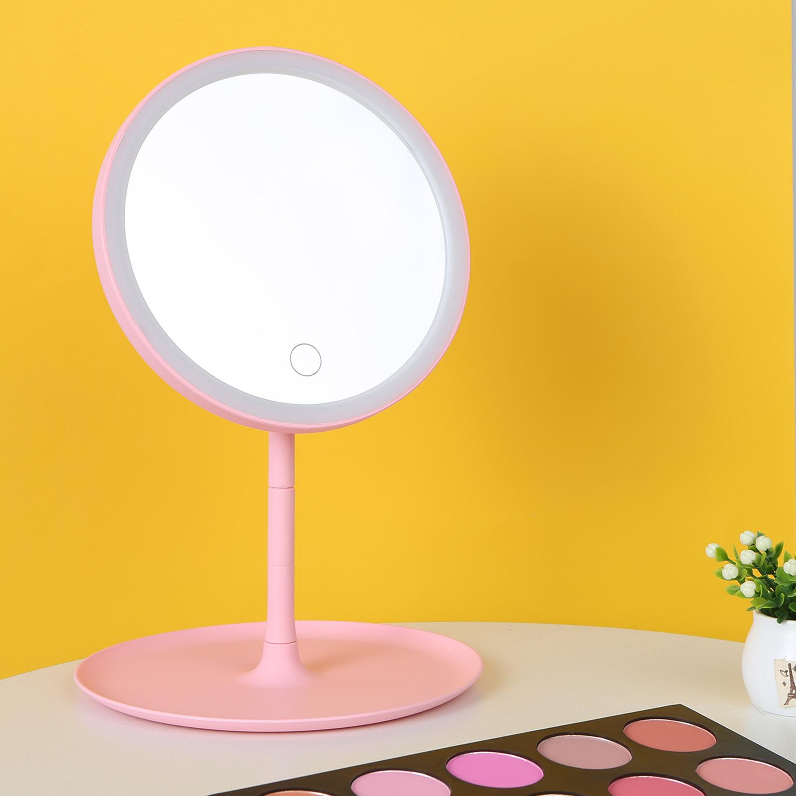 Перезаряжаемое круглое зеркало для макияжа с подсветкой L-ED, выключателем экрана, съемным основанием, настольным зеркалом для макияжа белый