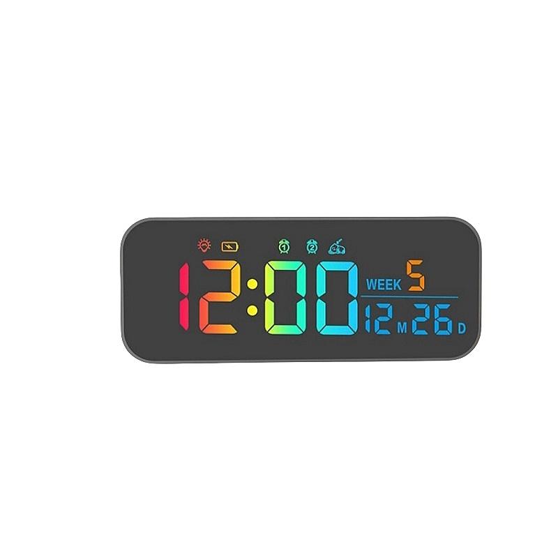 Перезаряжаемый цифровой будильник RGB с голосовым управлением, дата, неделя, двойной будильник, повтор, настольные часы, выключатель питания, 12/24-часовой музыкальный светодиодный будильник чёрный
