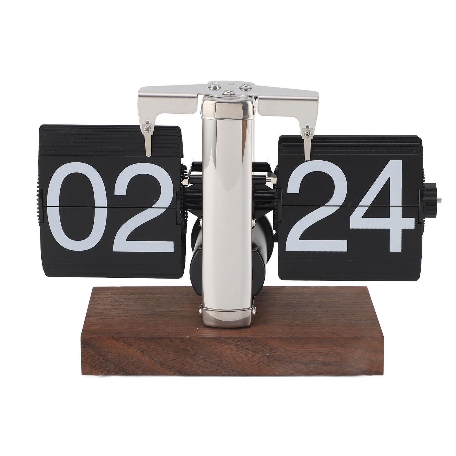 Перекидной настольный часовой механизм Автоматический механический перекидной 24-часовой Деревянное основание Нержавеющая сталь Винтажный Ретро Цифровые настольные часы для дома, офиса