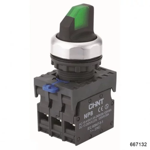 Переключатель поворотный с фиксацией на 2 положения, зеленый, CHINT NP8-11X/213 (667132), NP8-11X/213