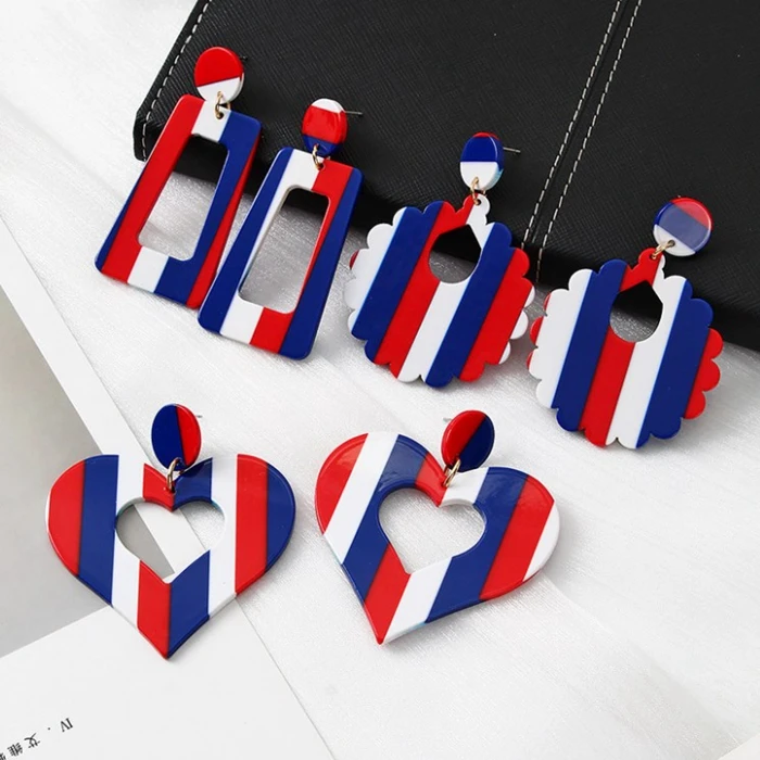 fashion design Independence Day resin custom geometric acrylic earrings, As picture