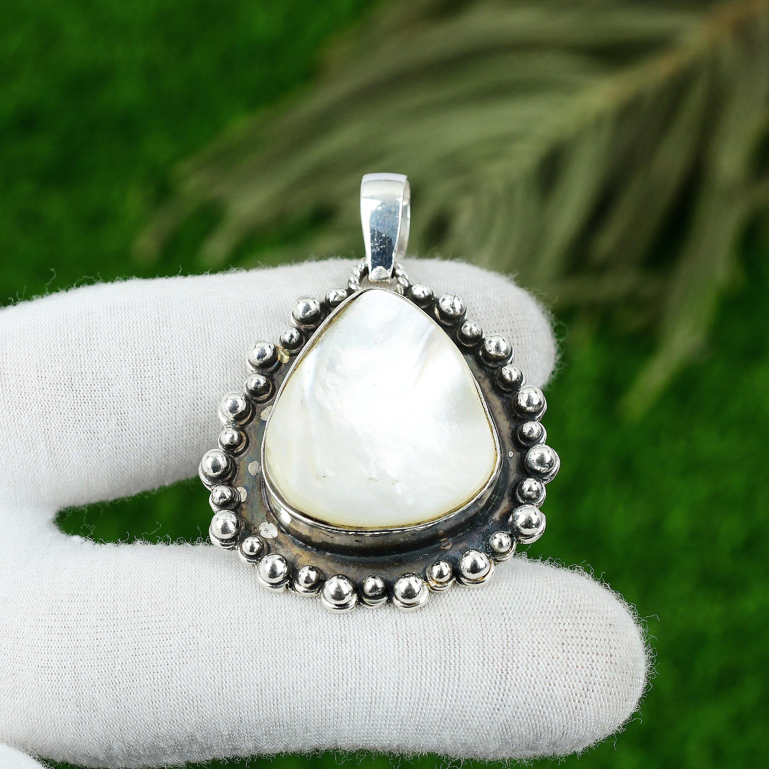 Перламутр Драгоценный Камень Стерлинговое Серебро Безель Июнь Рождение Арт Деко Новый Кулон