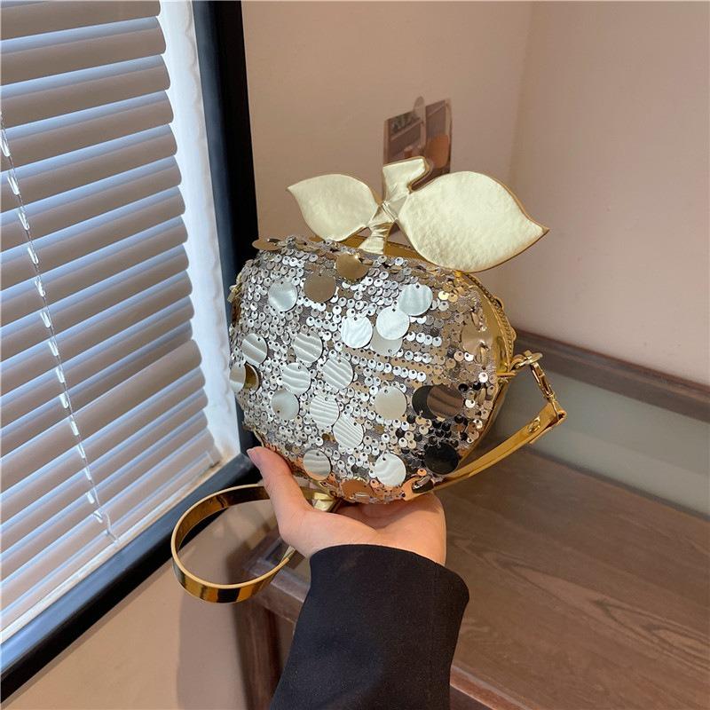 Персонализированная и креативная маленькая сумка Apple, новинка 2024 года, женская маленькая красная книжка в одном стиле, маленькая круглая сумка с пайетками на одно плечо, модная