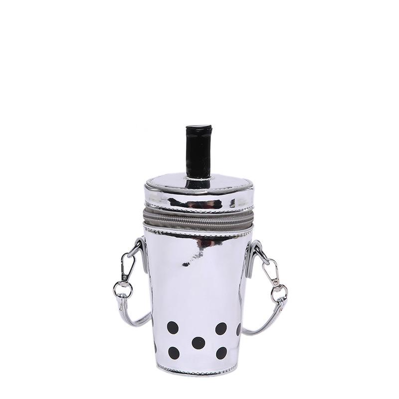 Персонализированная и креативная сумка для стакана молочного чая 2025 новая нишевая мода Мори мягкая сестра универсальная сумка-цилиндр на одном плече с лазерным эффектом серебряный