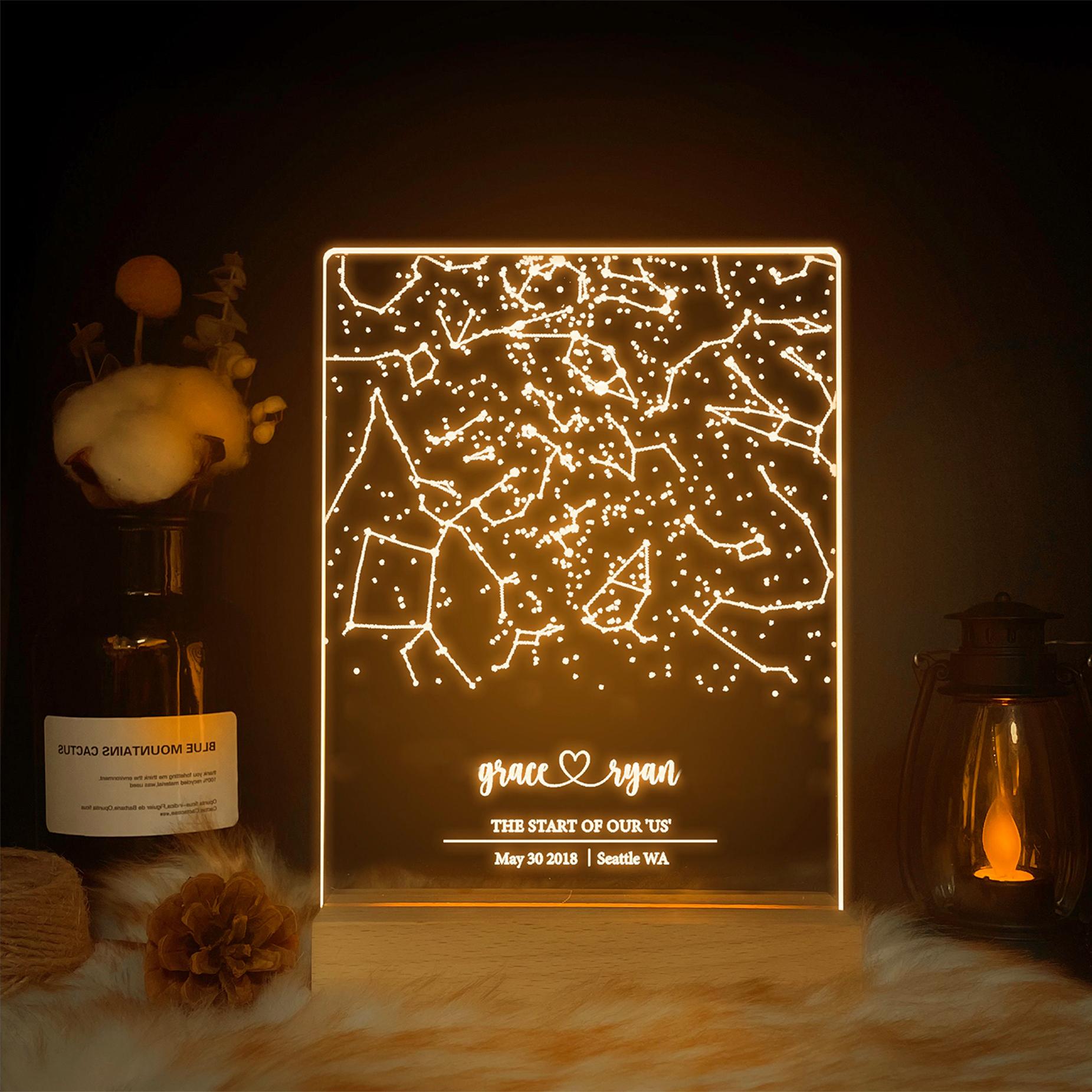 Персонализированная лампа с диаграммой созвездий, индивидуальный ночник для спальни для пар, мамы, папы, любви, семьи, дня рождения, сувениров, подарков