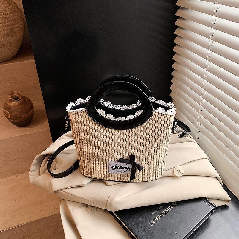 Персонализированная универсальная нишевая дизайнерская плетеная сумка женская сумка лето новая приморский отпуск пляжная сумка полая соломенная сумка чёрный