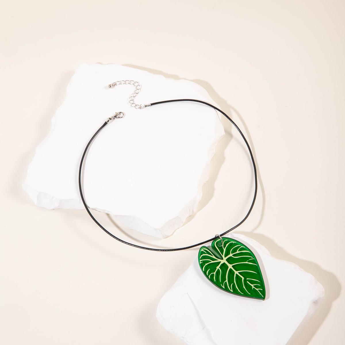 Персонализированное летнее зеленое преувеличенное акриловое полое ожерелье с подвеской в виде листа и ожерелье для женщин