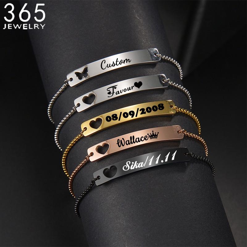 Персонализированный браслет из нержавеющей стали с гравировкой имени, полое сердце, браслет на заказ, именная табличка, браслеты с датой для женщин, ювелирные изделия для девочек