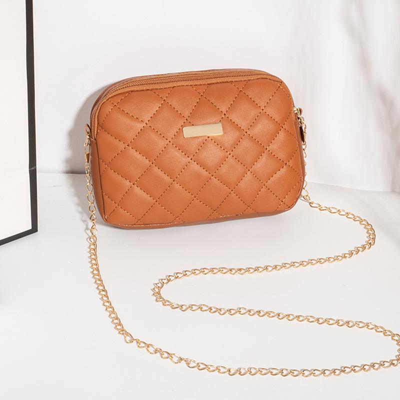 Персонализированный дизайн с двойной молнией, маленькая квадратная сумка, модная и простая вышитая ромбовидная сумка-цепочка, сумка через плечо, мини-сумка для мобильного телефона светло-коричневого