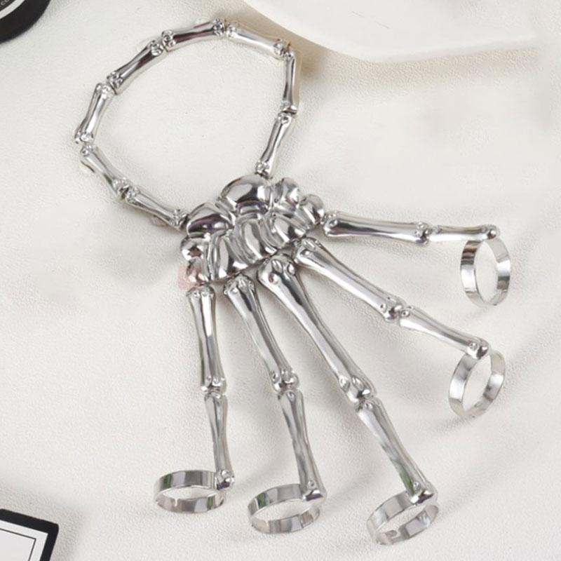 Персонализированный панк-череп, кость руки, универсальный браслет-кольцо с пятью пальцами, регулируемая цельная цепочка серебряный