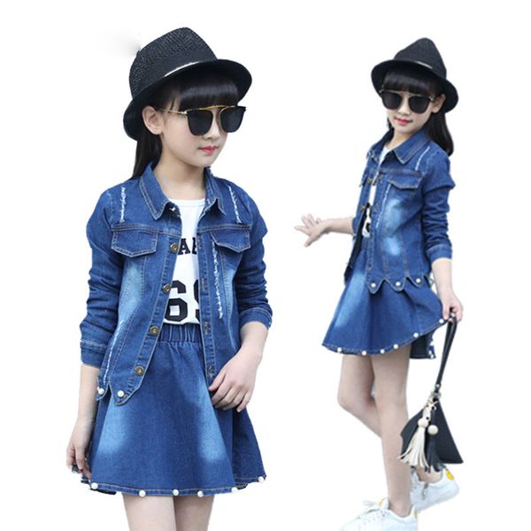 Девушки одежда наборы джинсовая куртка и юбки костюм наборы для девочки подростк