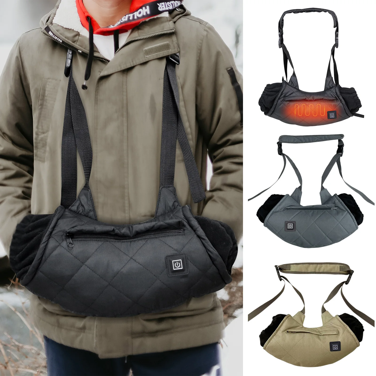Перчатка с электрическим подогревом, водонепроницаемая термозащитная ручная упаковка с мешками на молнии, нагреватель для рук через шею, р...